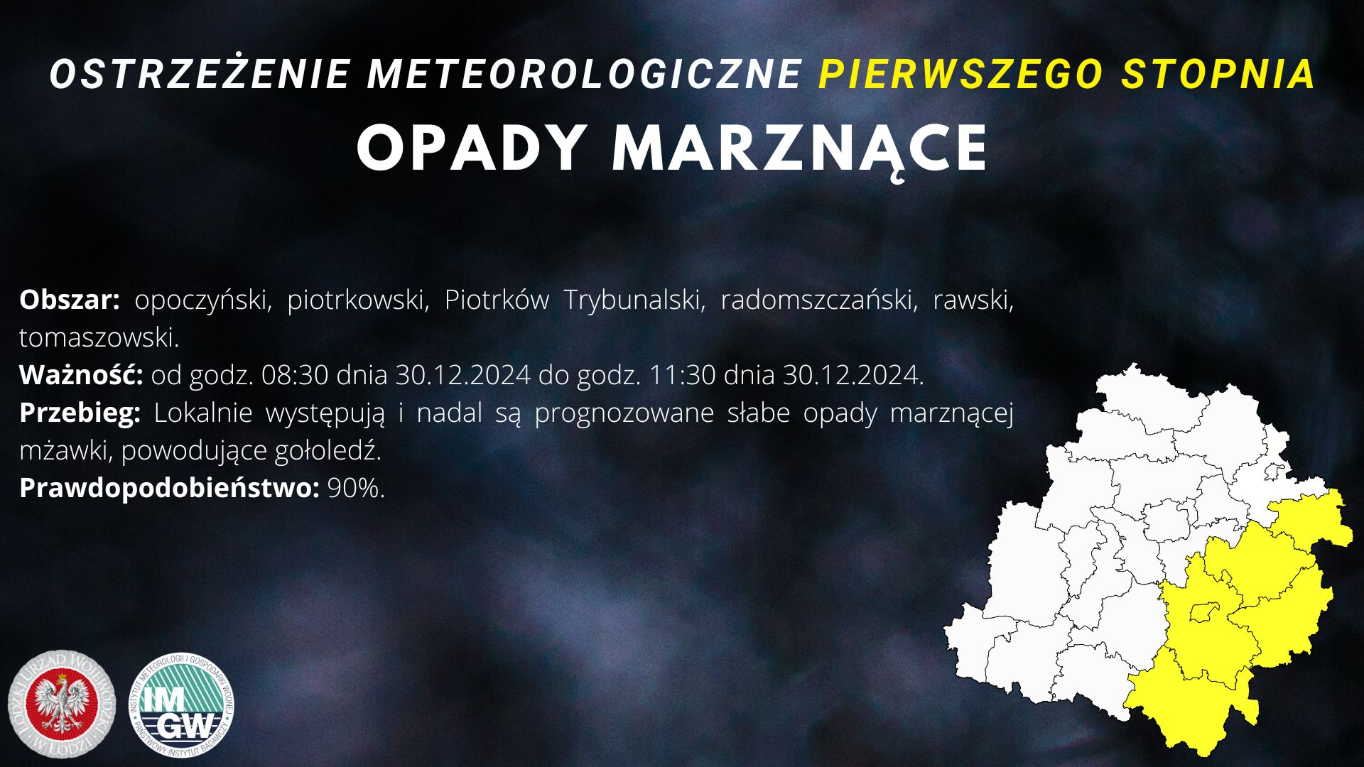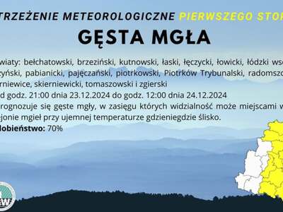 Instytut Meteorologii i Gospodarki Wodnej - IMGW PIB wydał ostrzeżenie meteorologiczne I stopnia dotyczące opadów marznących.