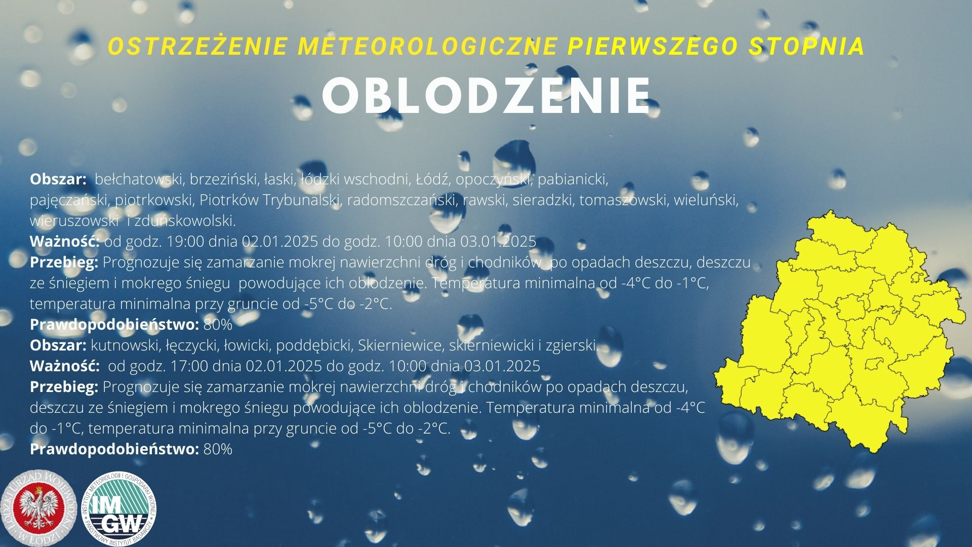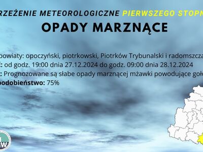 Instytut Meteorologii i Gospodarki Wodnej - IMGW PIB wydał ostrzeżenie meteorologiczne I stopnia dotyczące oblodzenia