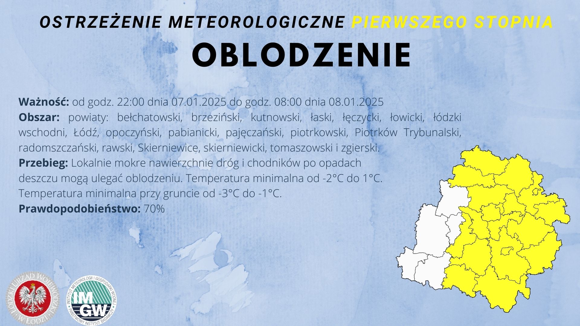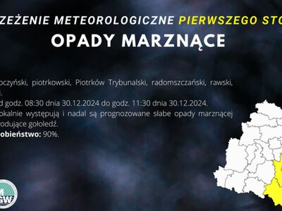 Instytut Meteorologii i Gospodarki Wodnej - IMGW PIB wydał ostrzeżenia meteorologiczne I stopnia dotyczące oblodzenia
