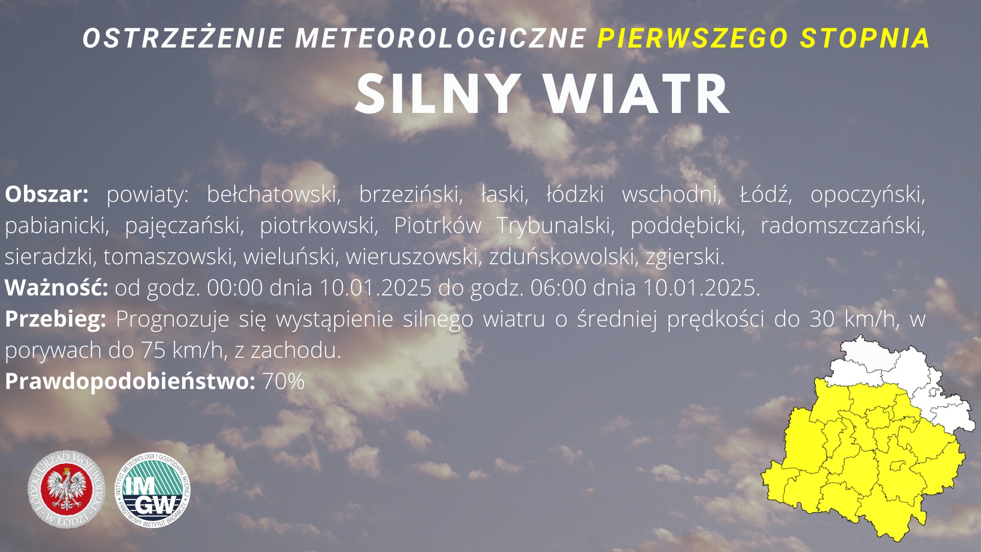 Instytut Meteorologii i Gospodarki Wodnej - IMGW PIB wydał ostrzeżenie meteorologiczne I stopnia dotyczące silnego wiatru
