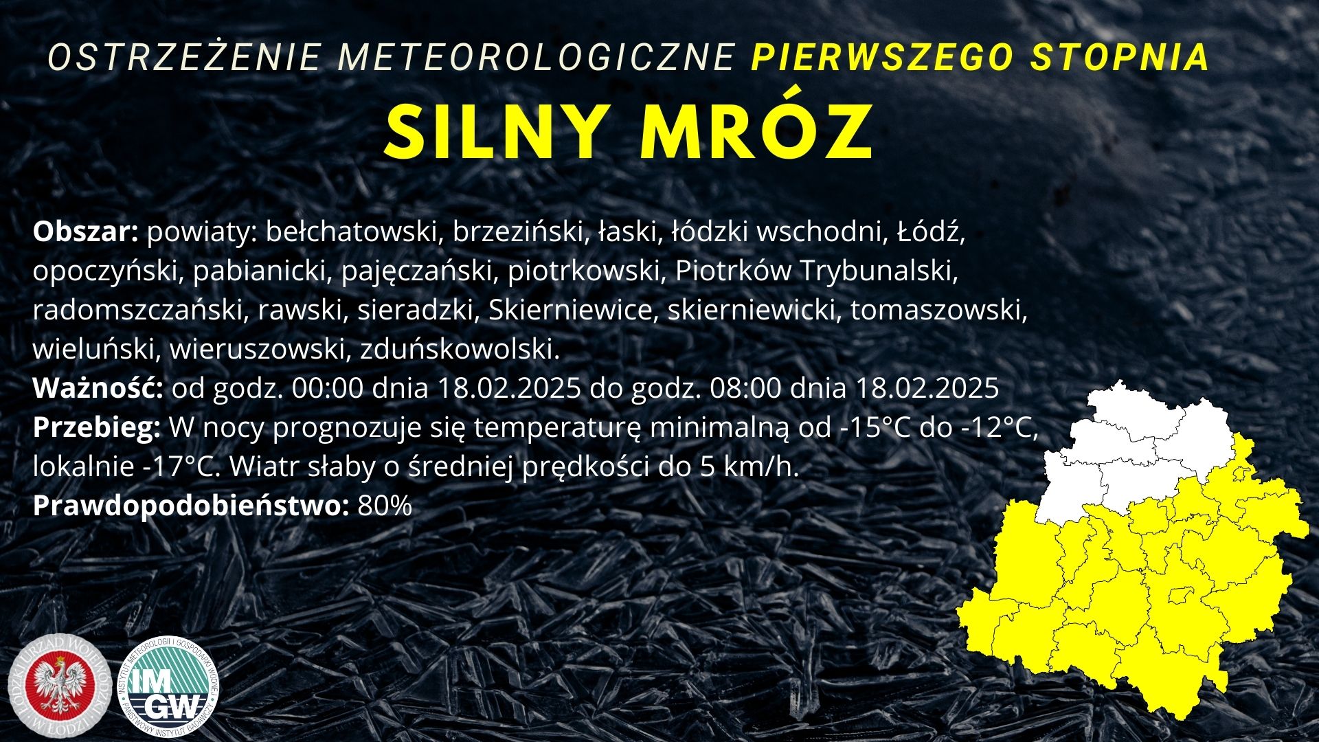 Instytut Meteorologii i Gospodarki Wodnej - IMGW PIB wydał ostrzeżenie meteorologiczne I stopnia dotyczące silnego mrozu.