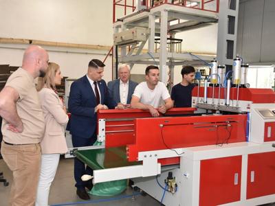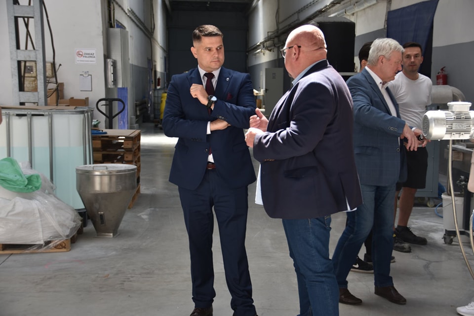 Burmistrz Jarosław Bąkowicz wspólnie z zastępcą Anną Liszką oraz Przewodniczącym Rady Miejskiej Łukaszem Kęsickim mieli przyjemność zapoznać się z profilem działalności tej firmy.