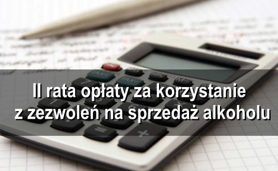 Urząd Miejski w Kamieńsku przypomina, że w dniu 31 maja 2020 r. mija termin na wniesienie II raty opłaty za korzystanie z zezwolenia na sprzedaż napojów alkoholowych.