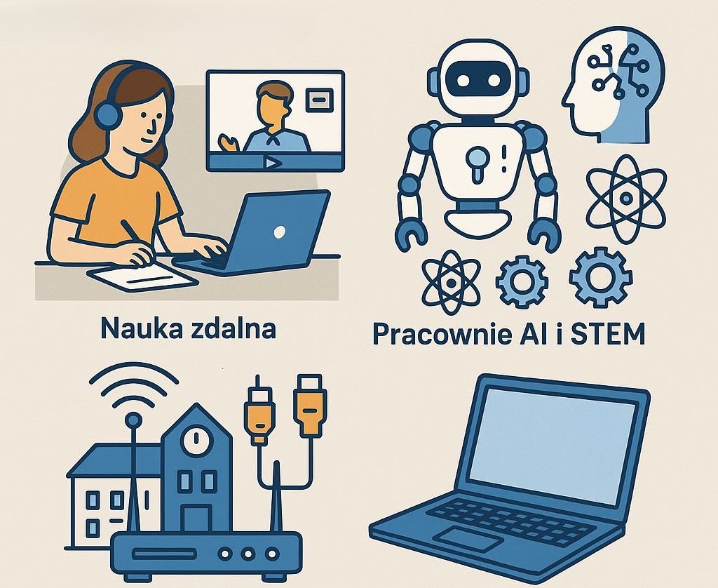 W ramach Krajowego Planu Odbudowy szkoły z terenu Gminy Kamieńsk otrzymały nowoczesne pracownie STEM, AI, sprzęt do nauki zdalnej, komputery przenośne oraz modernizację sieci LAN.