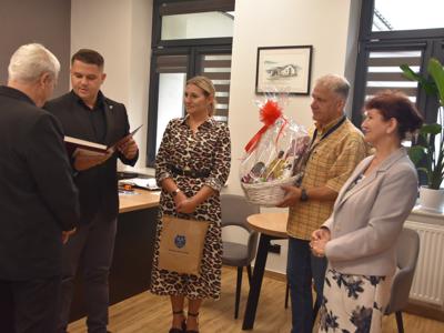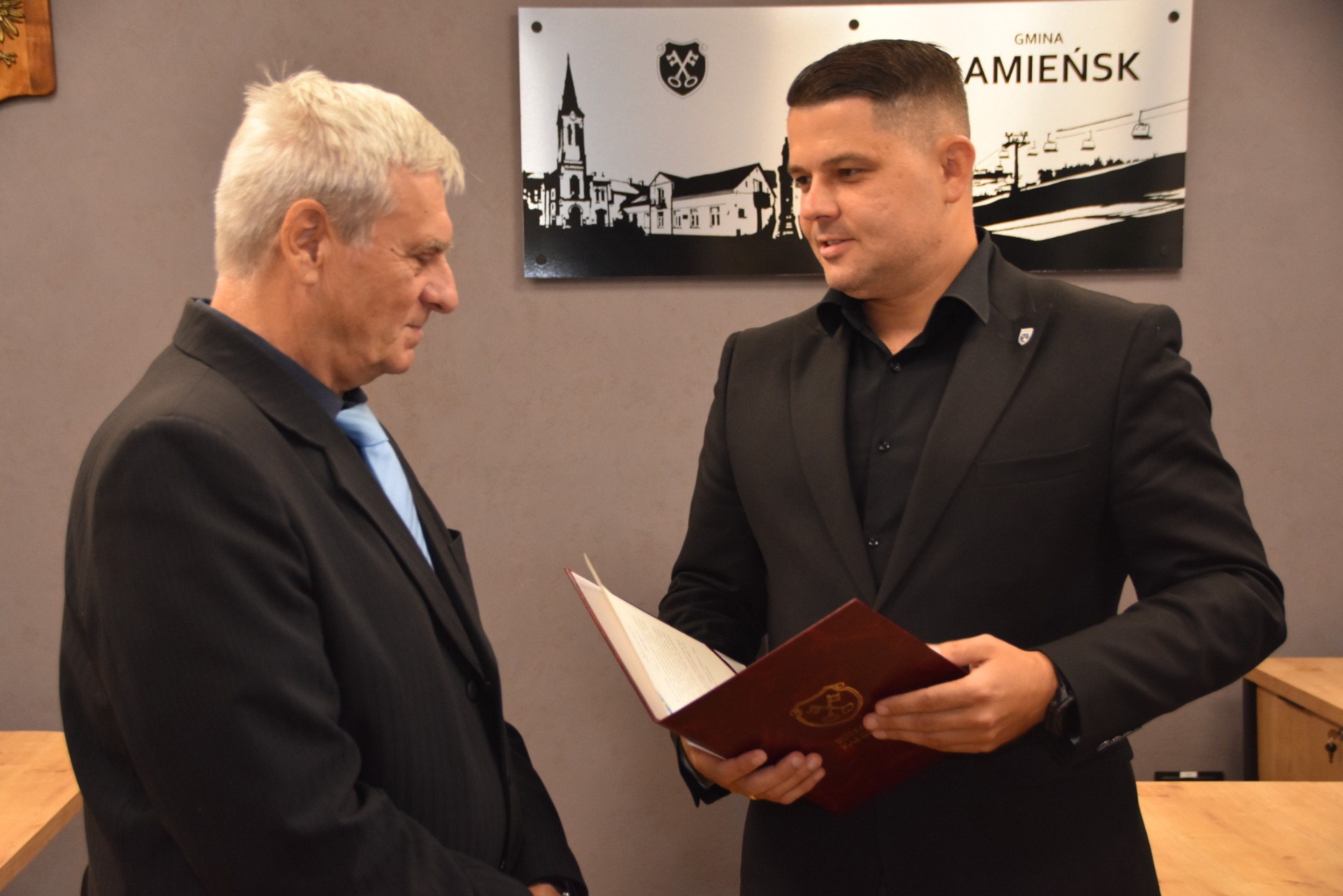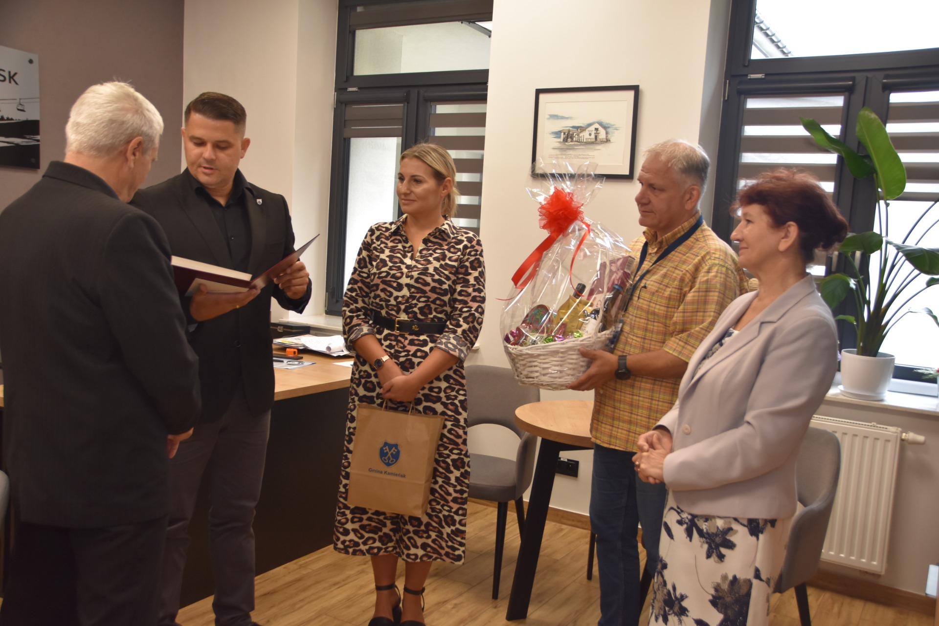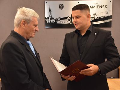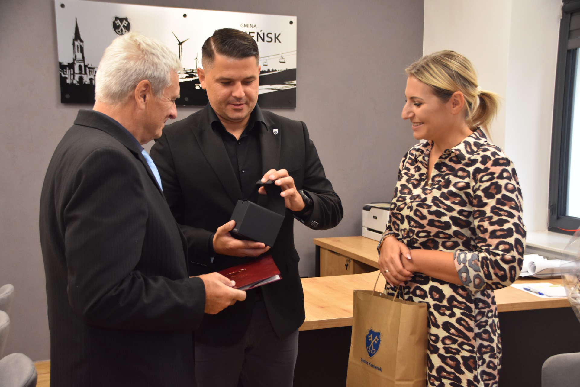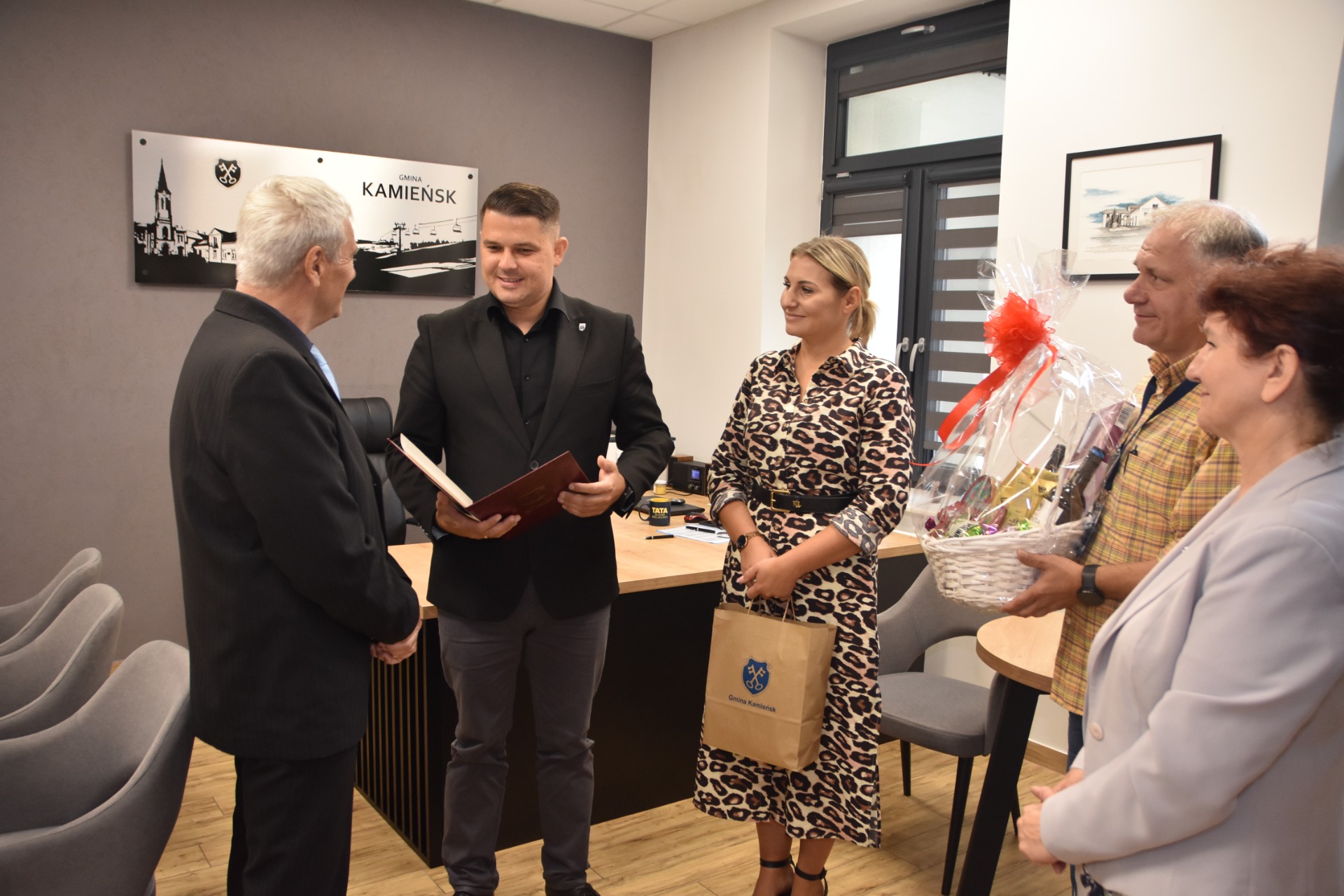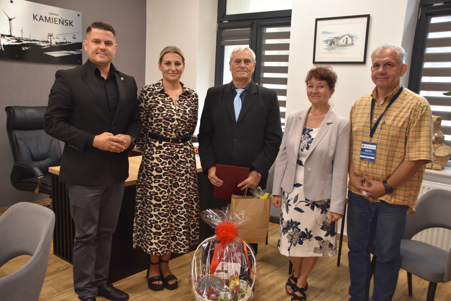Podczas spotkania Burmistrz Kamieńska Jarosław Bąkowicz wspólnie z Zastępcą Anną Liszką, Skarbnikiem Gminy Marią Ozgą oraz Kierownikiem Referatu Gospodarki Komunalnej Maciejem Śliskowskim złożyli Panu Andrzejowi serdeczne podziękowania za lata sumiennej pracy i wkład w życie naszej społeczności. W dowód uznania wręczono mu prezent niespodziankę z dedykacją.