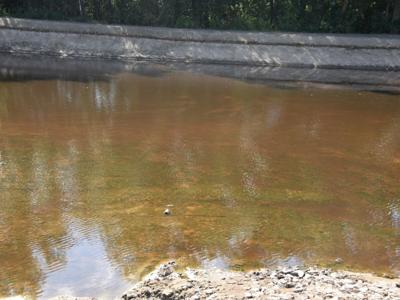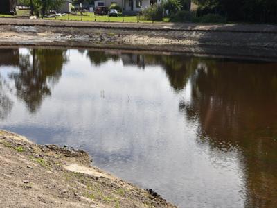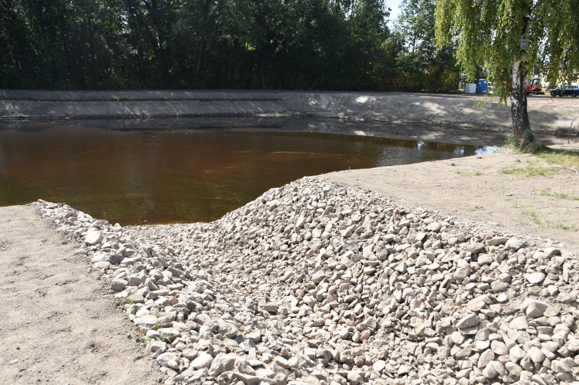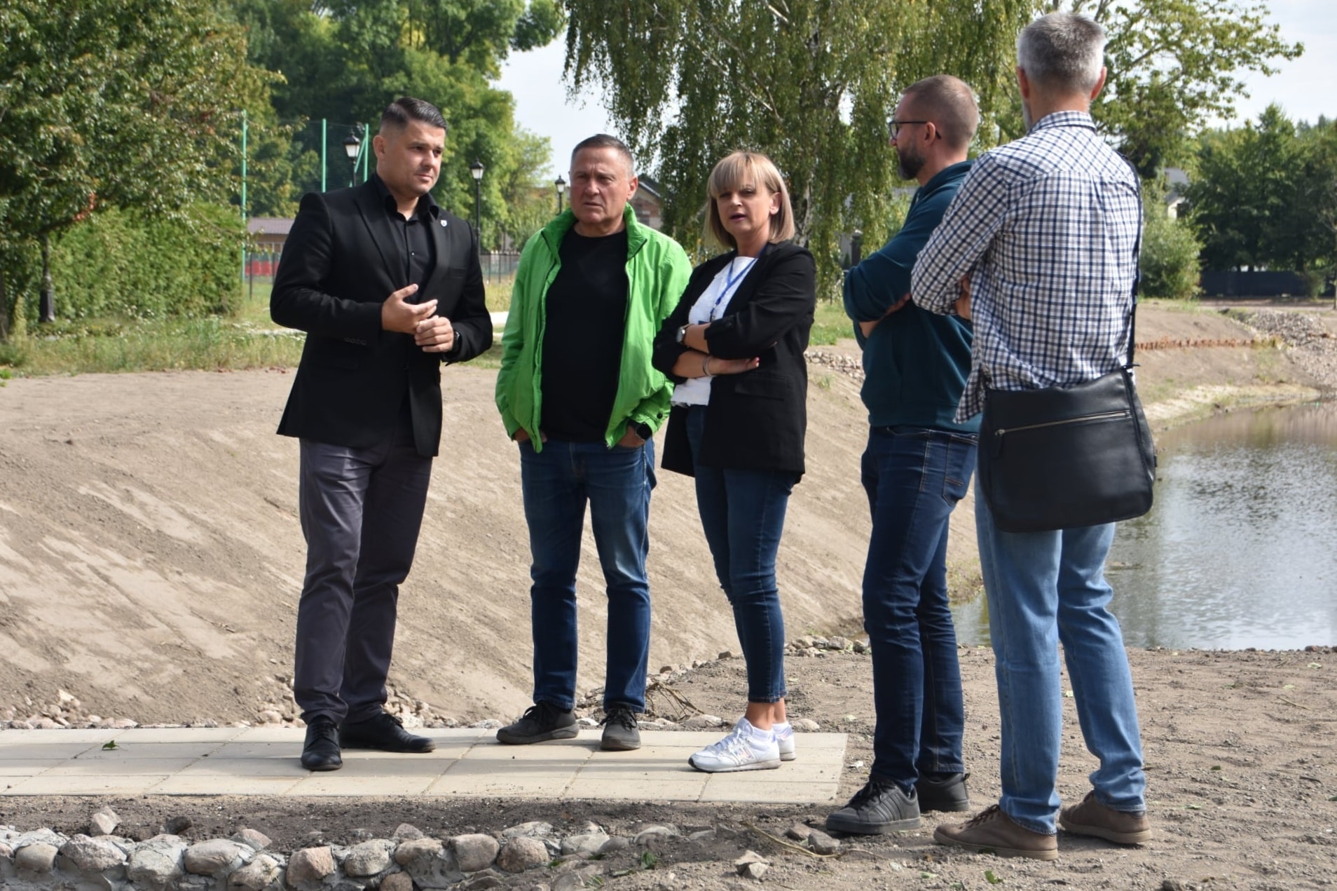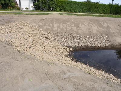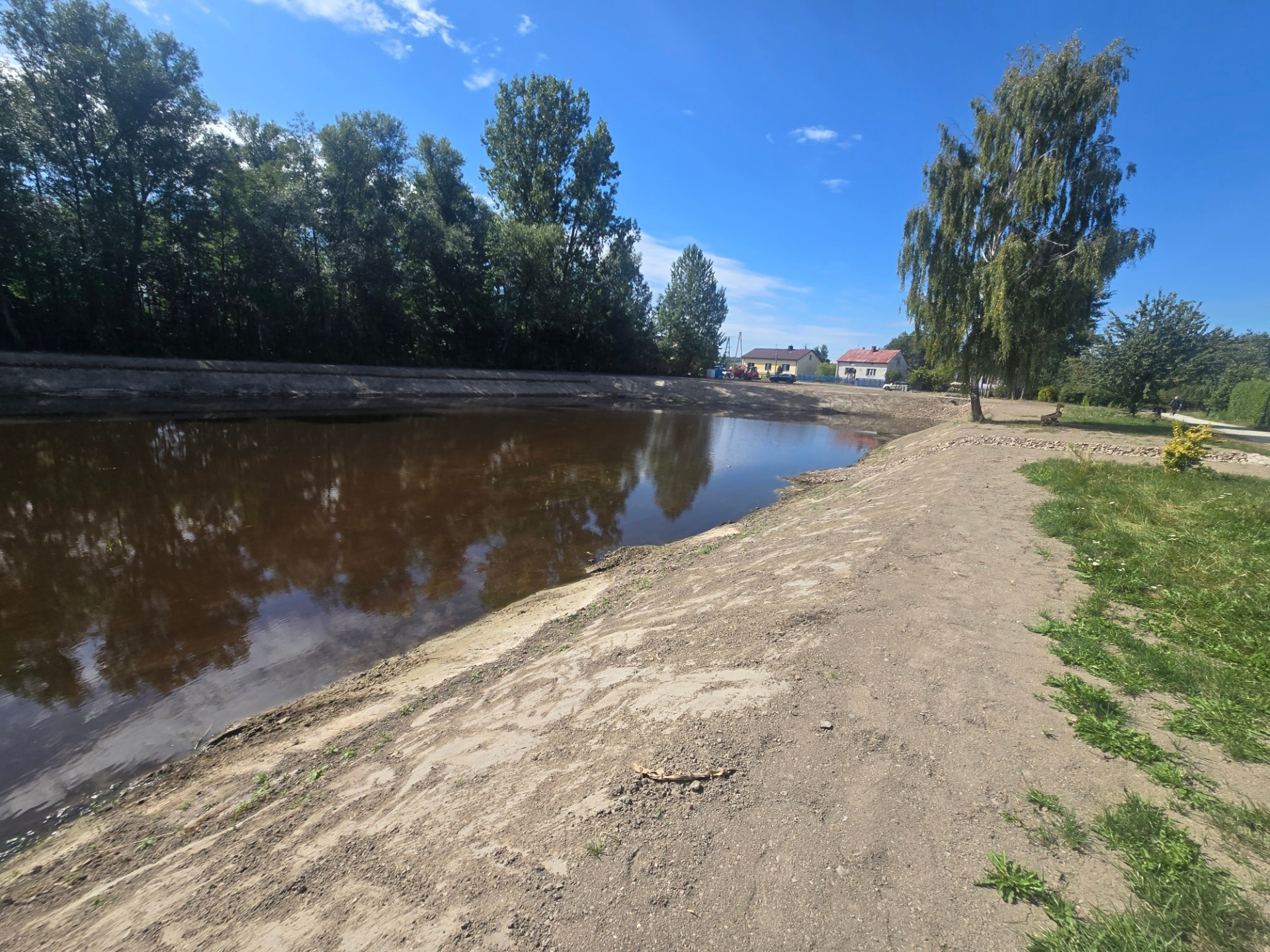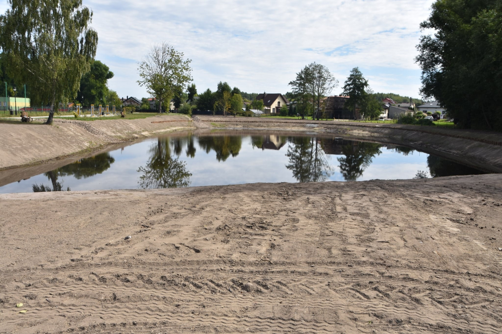 Czekamy jeszcze aż wzejdzie zasiana wokół zbiornika trawa.