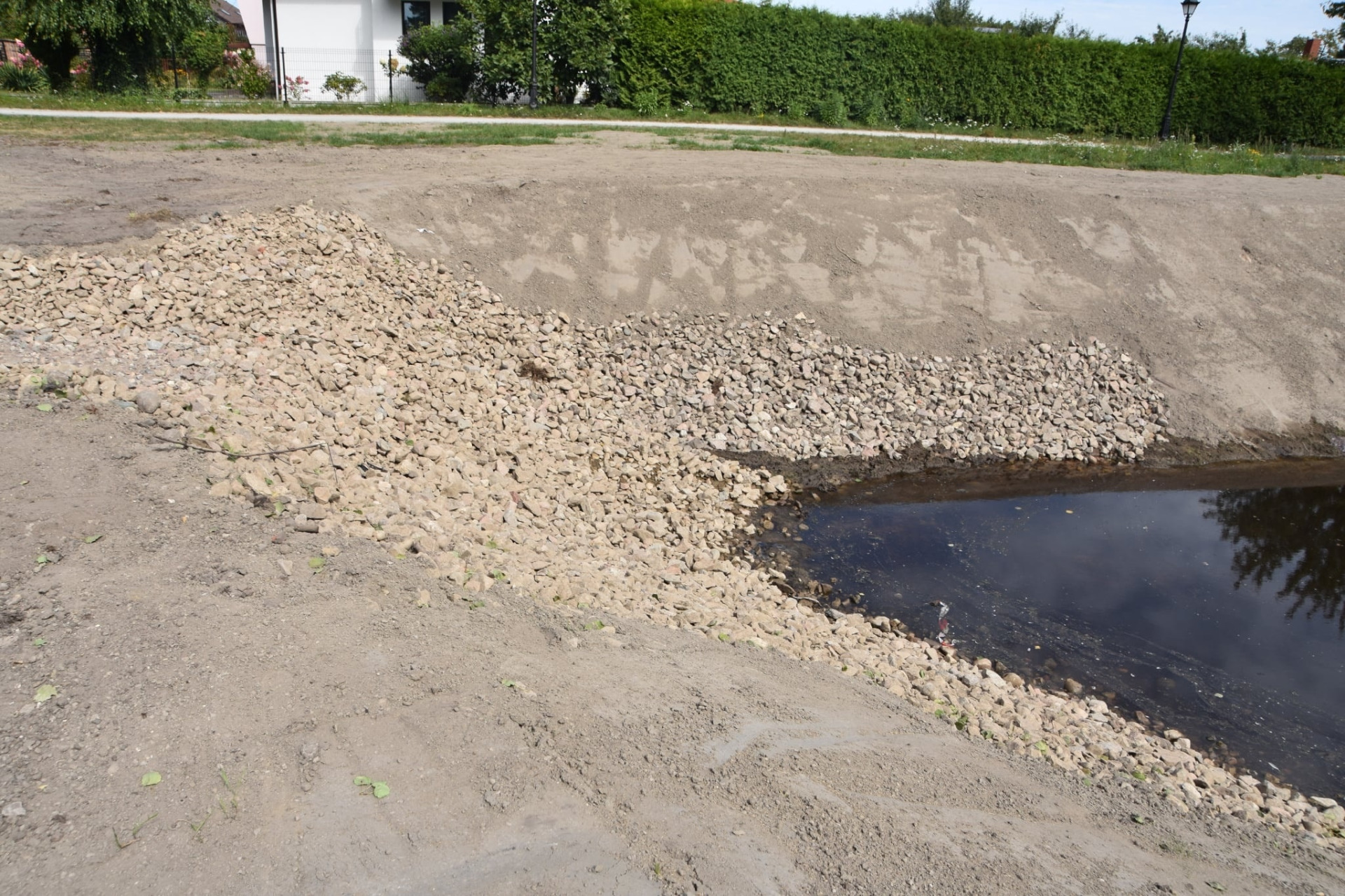 Dzięki wykonanym pracom zyskaliśmy piękny i funkcjonalny obiekt, który aktualnie napełnia się wodą (gruntową i opadową).