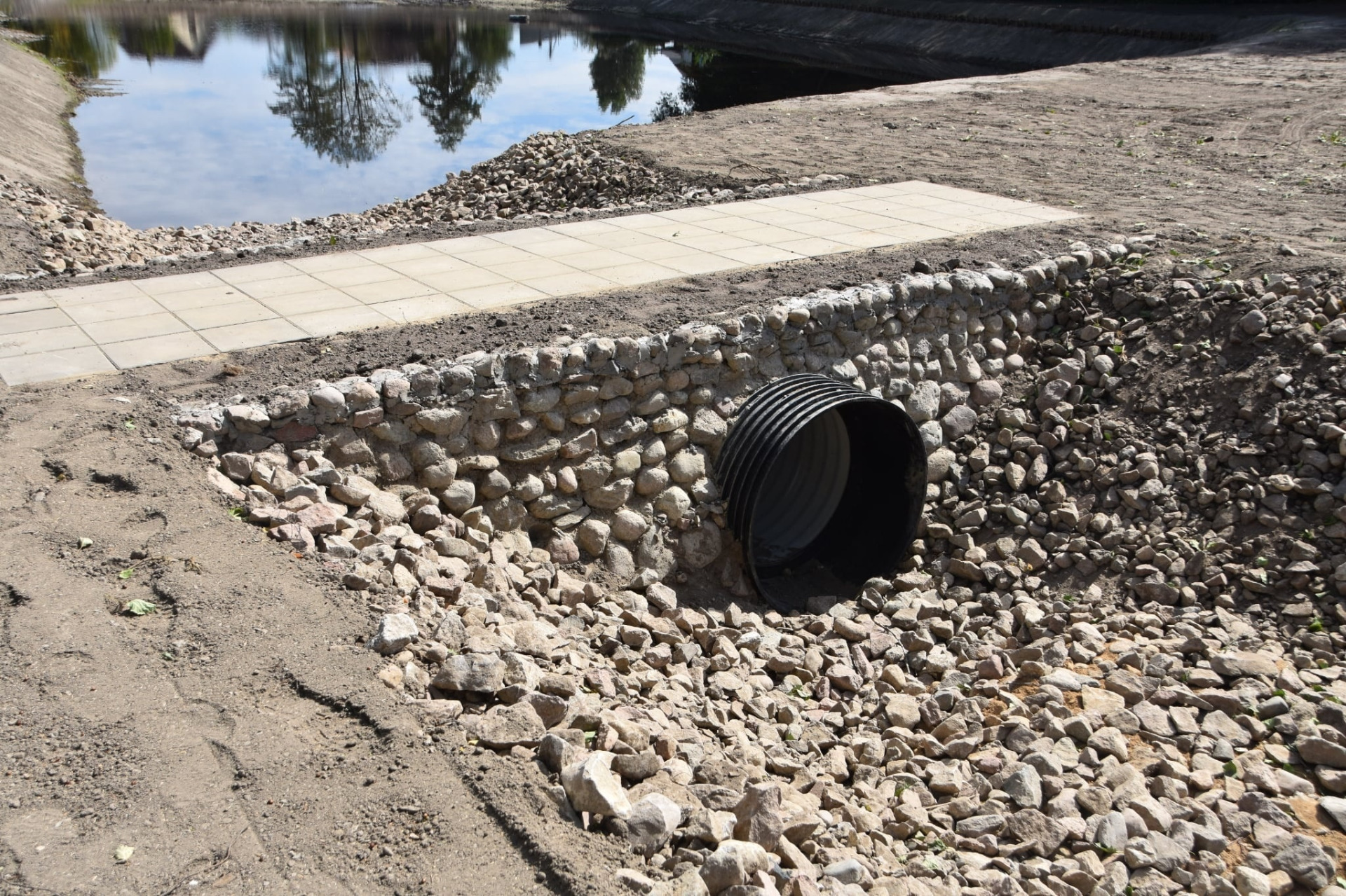- wzmocnienie kamieniami kanałów dochodzących do zbiornika,