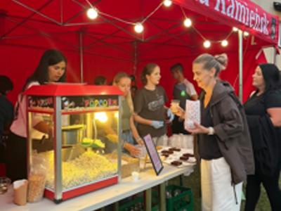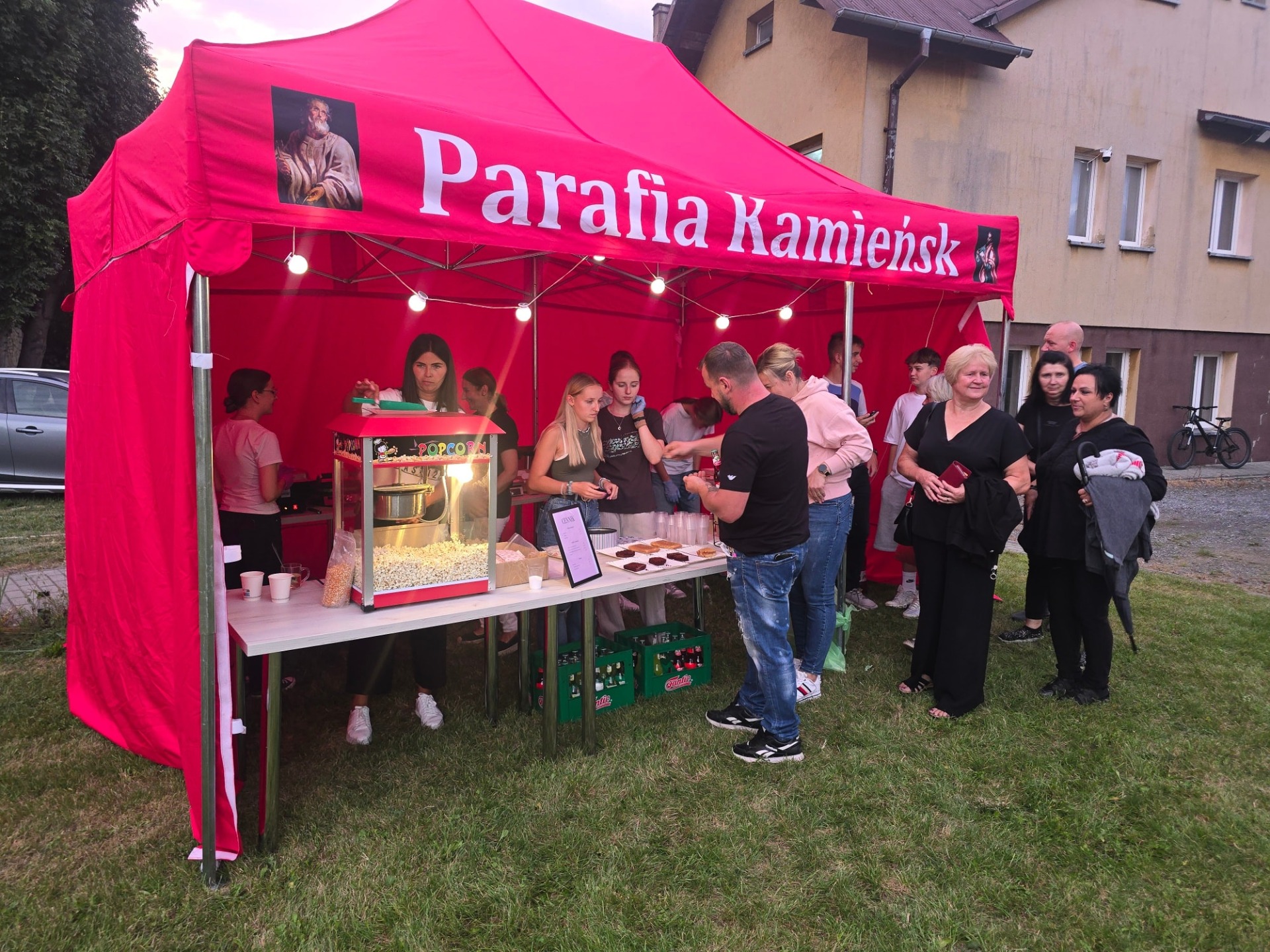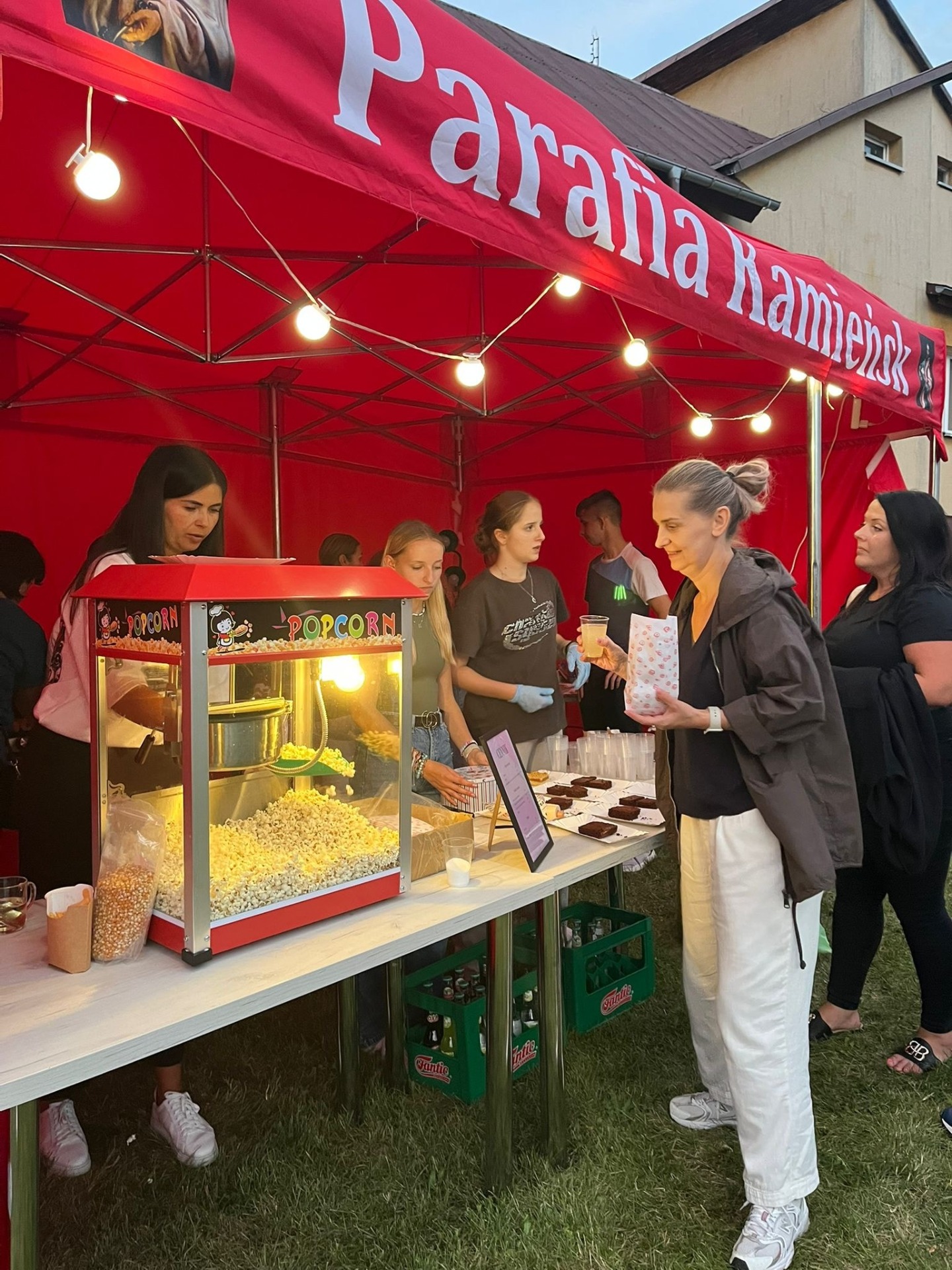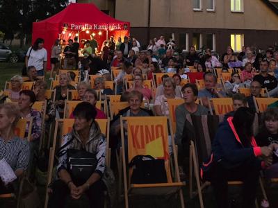 Uczestnicy seansu mogli wygodnie zasiąść nie tylko na przygotowanych leżakach, ale także rozłożyć piknikowe koce, co sprzyjało swobodnej i rodzinnej atmosferze. Dodatkowym atutem wieczoru były pyszne przekąski, którymi zajęła się młodzież z Katolickiego Stowarzyszenia Młodzieży w Kamieńsku.