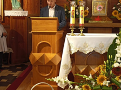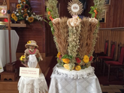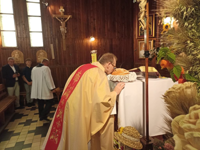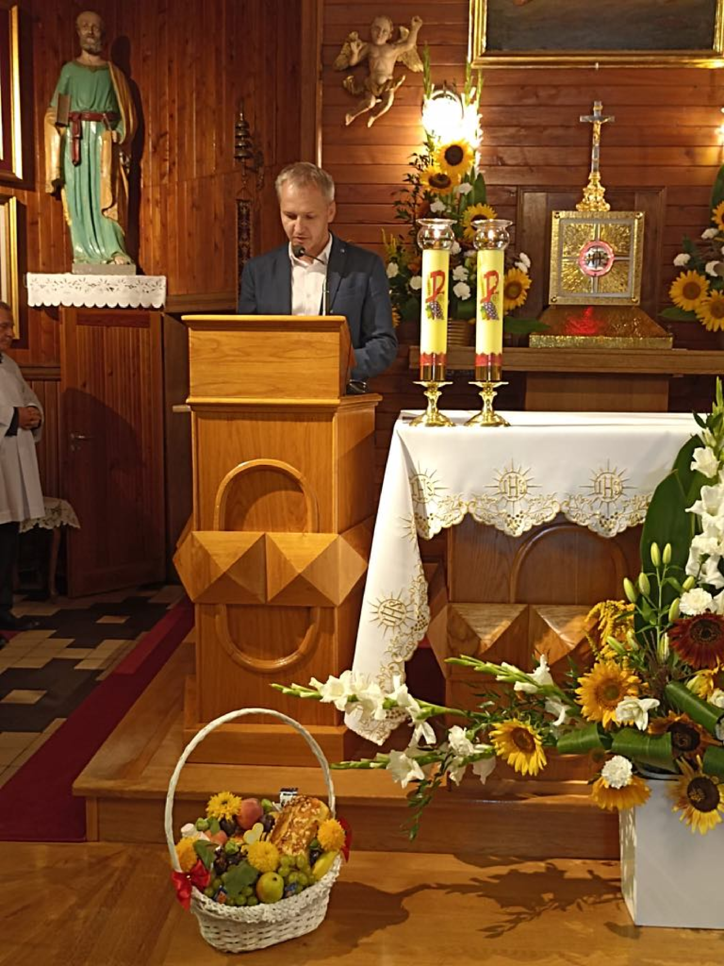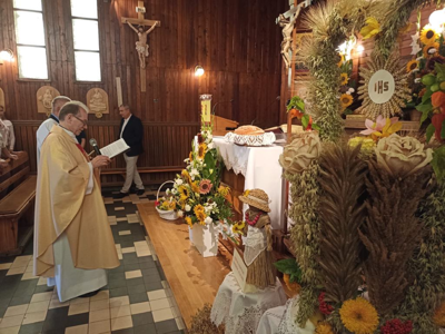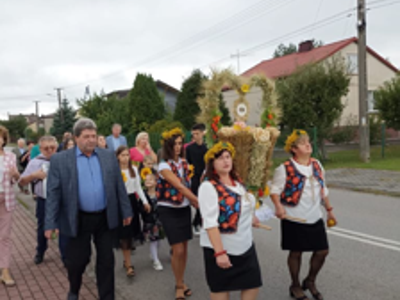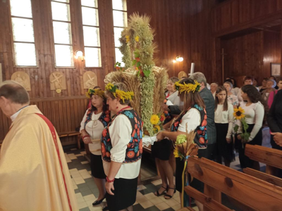 Centralnym punktem doniosłej uroczystości była Msza św. dziękczynna za zebrane płody rolne, którą celebrował ksiądz proboszcz Cezary Kaleta. W obchodach święta plonów udział wzięła Zastępca Burmistrza Anna Liszka.