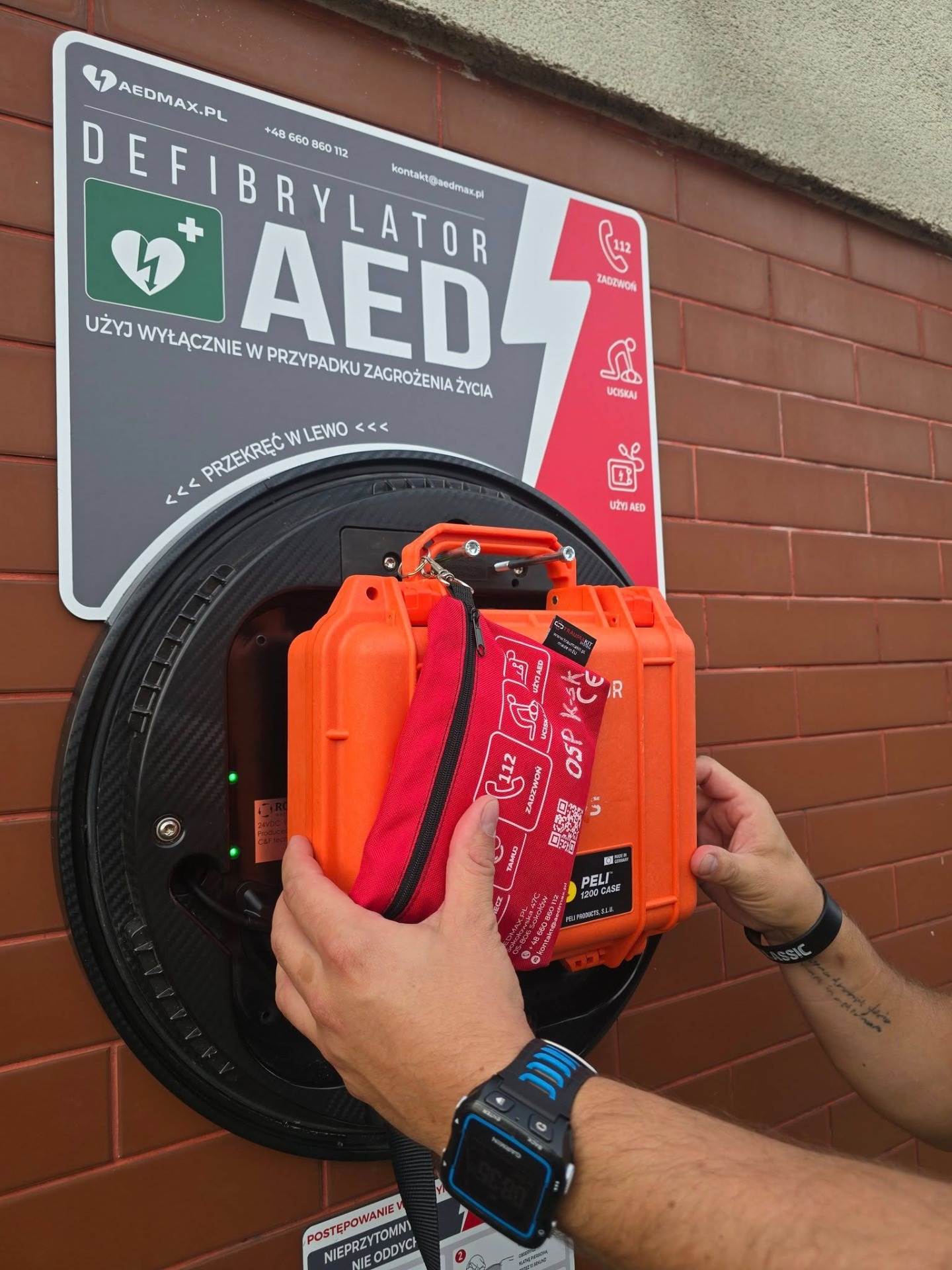Z przyjemnością informujemy, że na budynku KSRG OSP Kamieńsk zamontowano kolejne ogólnodostępne urządzenie AED (automatyczny defibrylator zewnętrzny). To już trzecie takie urządzenie zainstalowane na terenie naszej gminy, stanowiące ważny element systemu ratowania życia w przypadku nagłego zatrzymania krążenia.