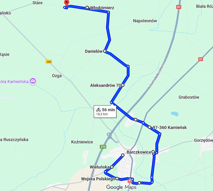 Kamieńsk – Barczkowice – Warszawka – Ochocice – Aleksandrów – Danielów – Włodzimierz – Gałkowice Stare