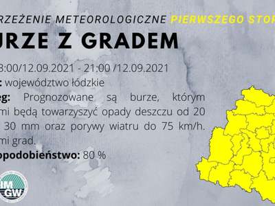 SMS IMGW-PIB OSTRZEGA: WIATR/1 łódzkie/radomszczański od 12:00/22.10 do 20:00/22.10.2021 prędkość do 40 km/h, porywy do 80 km/h, SW.