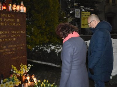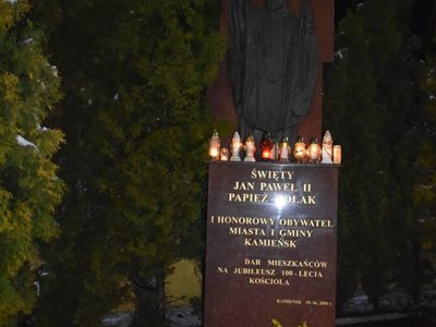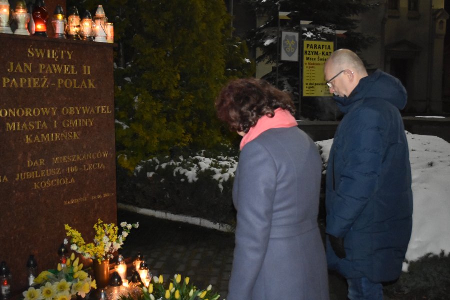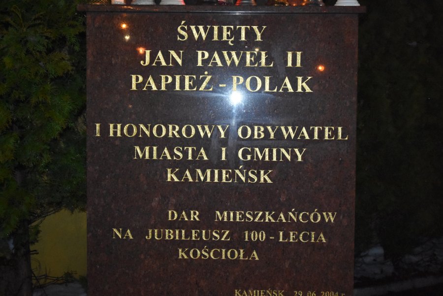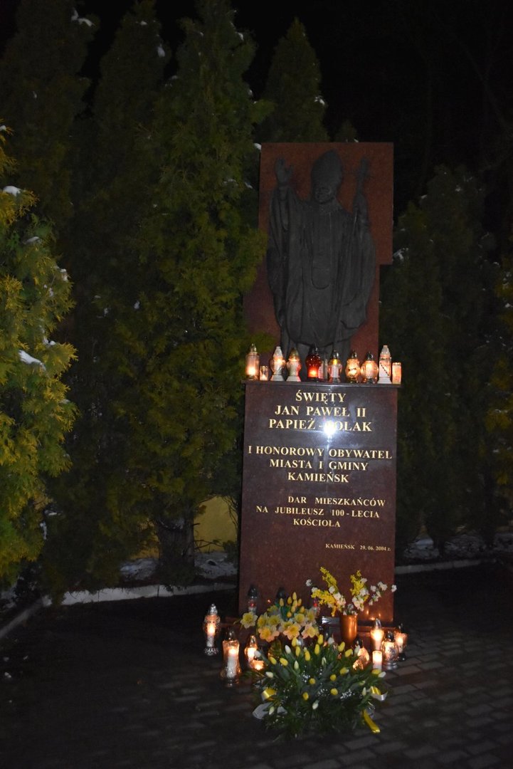 W dniu 2 kwietnia 2022 roku o godz. 21:37 mieszkańcy Kamieńska zebrali się przed pomnikiem św. Jana Pawła II w Kamieńsku aby wspólnie m.in. odśpiewać "Barkę", ulubioną pieśń papieża Polaka. Uroczystość poprowadził ks. proboszcz Marek Latos. Pod pomnikiem Jana Pawła II wiązankę kwiatów złożył Burmistrz Kamieńska Bogdan Pawłowski wraz ze Skarbnikiem Gminy Marią Ozgą.