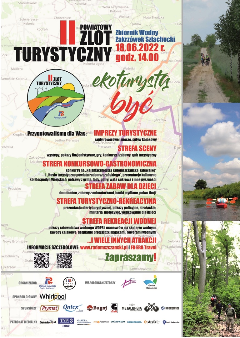 18 czerwca 2022r. wszystkie drogi w powiecie radomszczańskim prowadzić będą nad zbiornik wodny w Zakrzówku Szlacheckim. Wyjątkową możliwość rodzinnego spędzenia długiego weekendu – II Powiatowy Zlot Turystyczny proponuje Starostwo Powiatowe w Radomsku oraz współorganizatorzy wydarzenia - Gmina Ładzice i Gmina Radomsko. W tym roku pod hasłem „Ekoturystą BYĆ”.