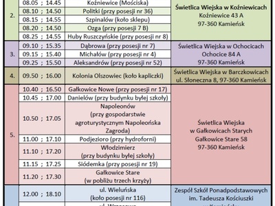Rozkład jazdy bezpłatnego gminnego przewozu pasażerskiego dla wyborców na obszarze Gminy Kamieńsk