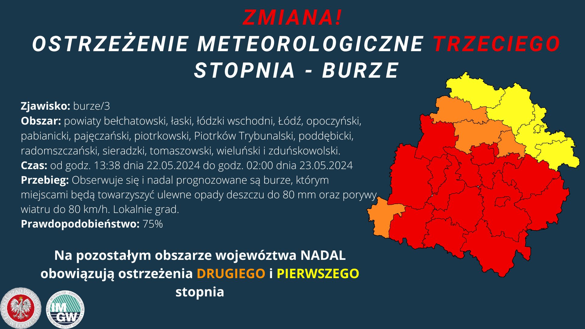 Instytut Meteorologii i Gospodarki Wodnej - IMGW PIB zmienił stopień ostrzeżenia na najwyższy obowiązujący /3