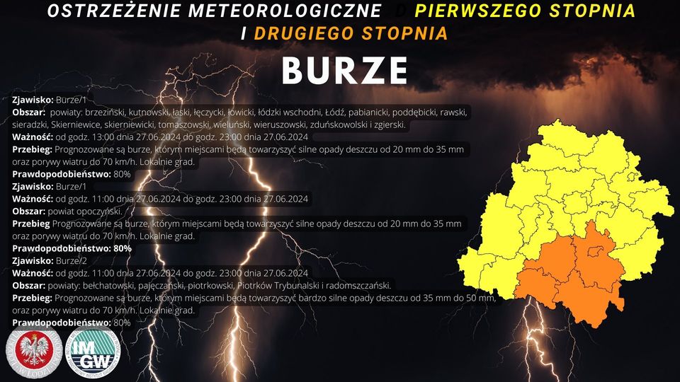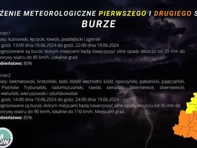 Instytut Meteorologii i Gospodarki Wodnej - IMGW PIB wydał ostrzeżenie meteorologiczne II stopnia dotyczące burz.