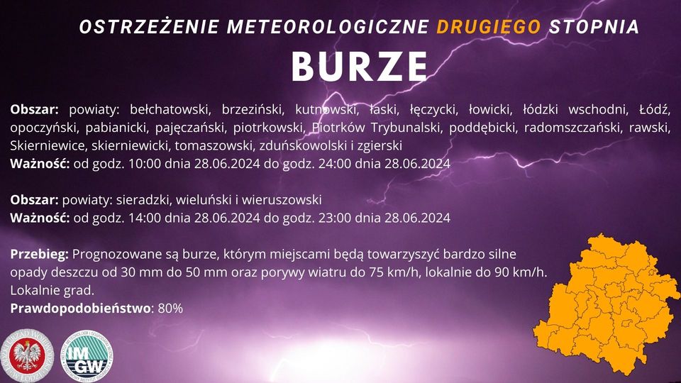 Instytut Meteorologii i Gospodarki Wodnej - IMGW PIB wydał ostrzeżenie meteorologiczne II stopnia dotyczące burz