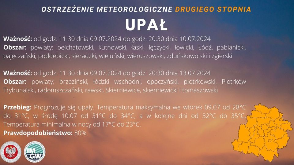 Instytut Meteorologii i Gospodarki Wodnej - IMGW PIBwydał ostrzeżenie meteorologiczne II stopnia dotyczące upału