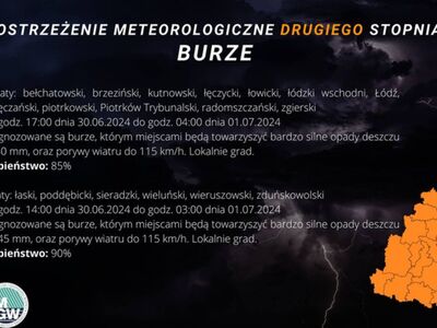 Instytut Meteorologii i Gospodarki Wodnej - IMGW PIB wydał kolejne ostrzeżenie: