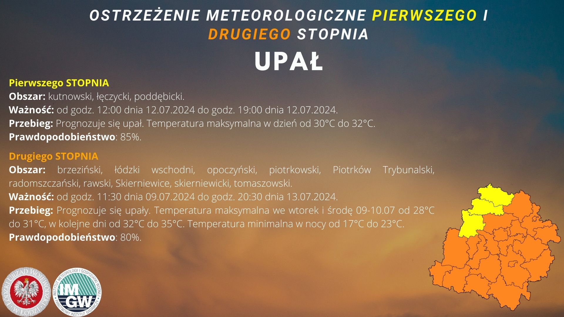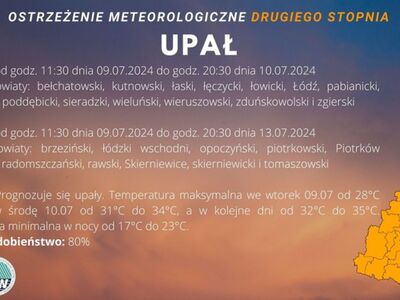 Instytut Meteorologii i Gospodarki Wodnej - IMGW PIB wydał ostrzeżenie meteorologiczne I i II stopnia dotyczące upału