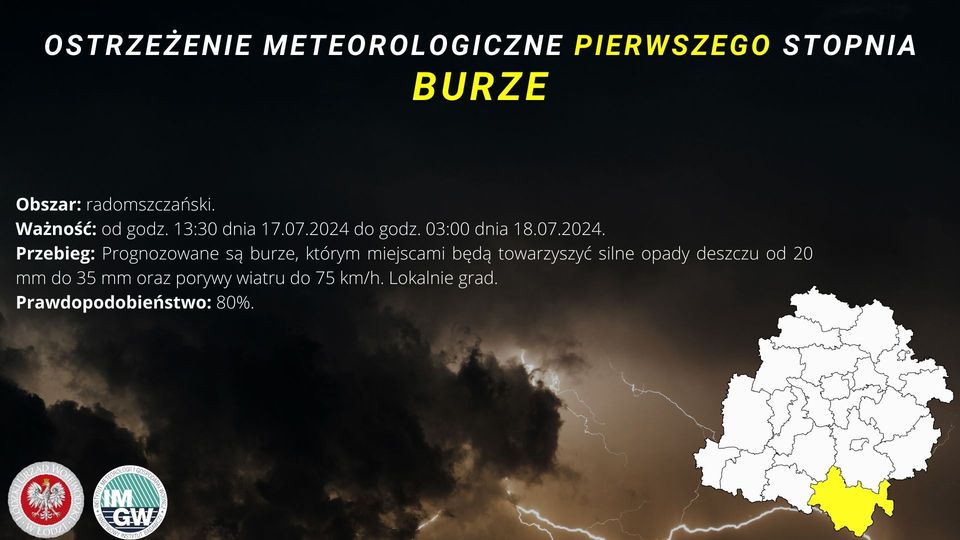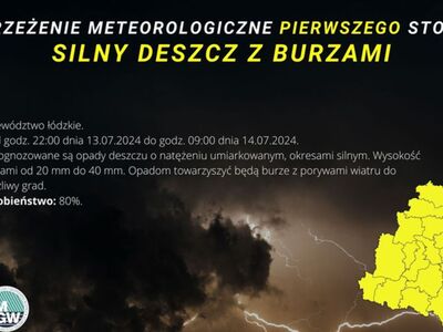 Instytut Meteorologii i Gospodarki Wodnej - IMGW PIB wydał ostrzeżenie meteorologiczne I stopnia dotyczące burz