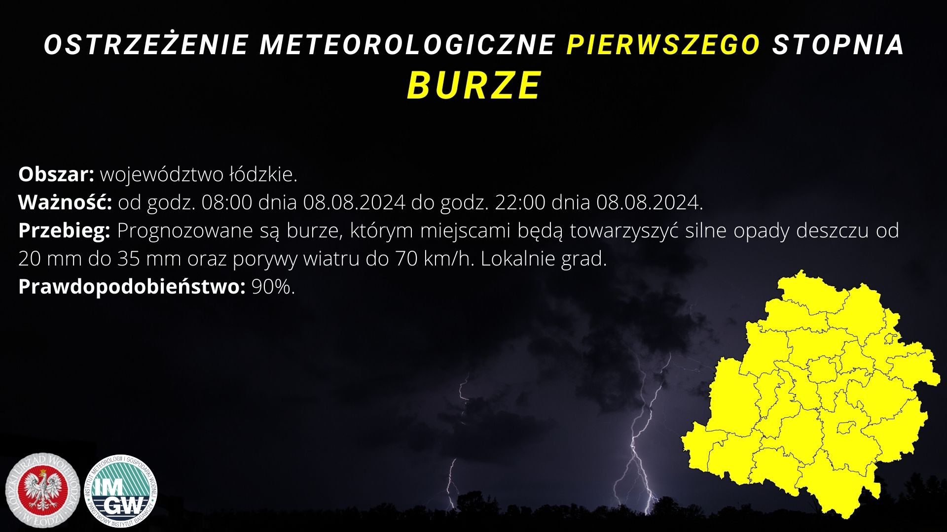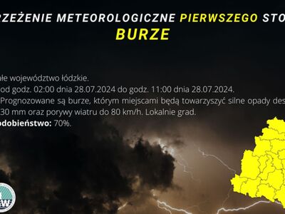 Instytut Meteorologii i Gospodarki Wodnej - IMGW PIB wydał ostrzeżenie meteorologiczne I stopnia dotyczące burz.