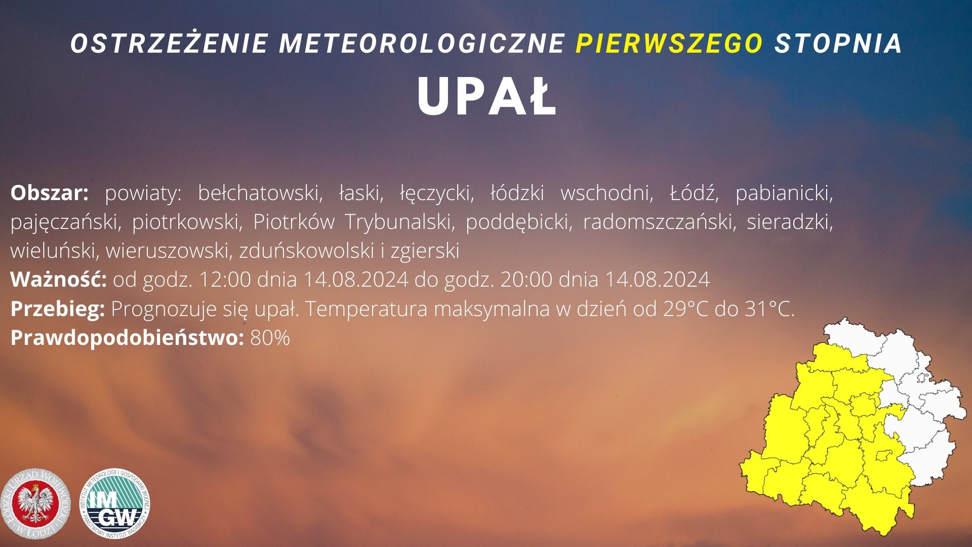 Instytut Meteorologii i Gospodarki Wodnej - IMGW PIB wydał ostrzeżenie meteorologiczne I stopnia dotyczące upału