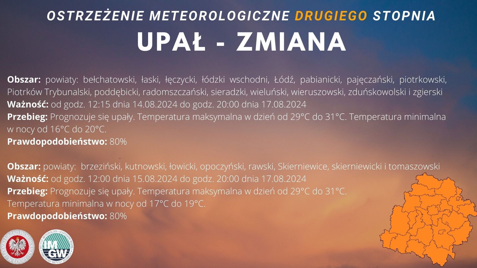 Dodatkowo, na terenie pozostałych powiatów zostało wydane również ostrzeżenie II stopnia przed upałami: