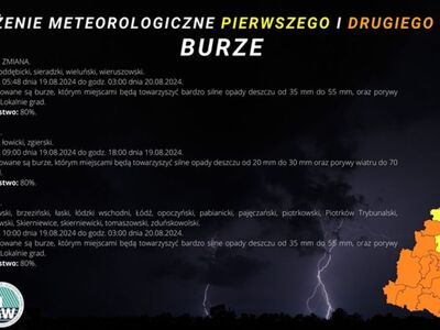 Instytut Meteorologii i Gospodarki Wodnej - IMGW PIB wydał ostrzeżenie: