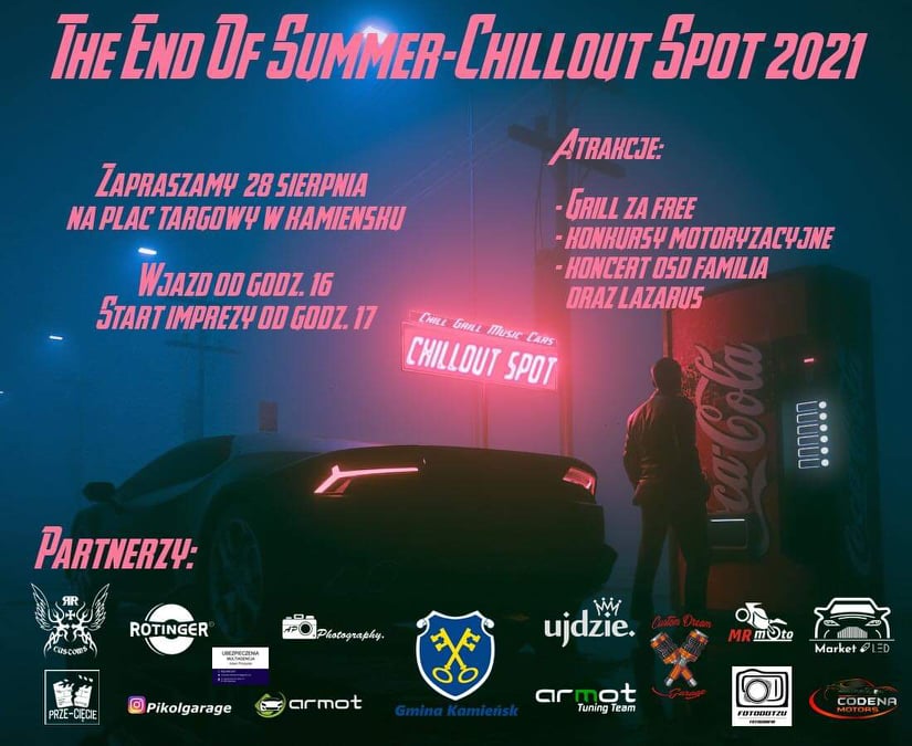Burmistrz Kamieńska Bogdan Pawłowski zaprasza na The End Of Summer – Chillout Spot 2021. Impreza odbędzie się w dniu 28 sierpnia 2021 roku (sobota) w godz. 17.00 – 21.00 na placu targowym w Kamieńsku. Zapraszamy fanów motoryzacji i dobrej muzyki.