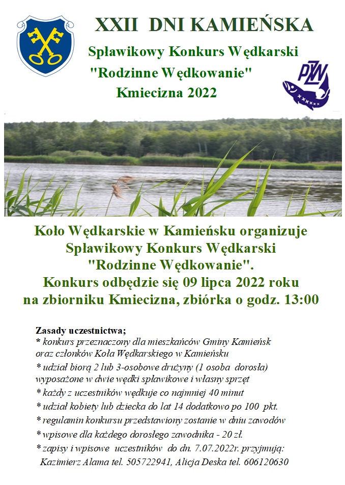 - konkurs przeznaczony dla mieszkańców Gminy Kamieńsk oraz członków Koła Wędkarskiego w Kamieńsku;