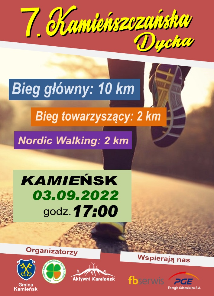 Już w najbliższą sobotę 3 września w Kamieńsku odbędzie się bieg uliczny „7. Kamieńszczańska Dycha”. Tradycyjnie do wyboru dwa dystanse 2 km oraz 10 km.