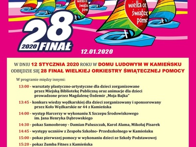 W DNIU12 STYCZNIA 2020ROKU WDOMU LUDOWYM W KAMIEŃSKU ODBĘDZIE SIĘ28 FINAŁ WIELKIEJ ORKIESTRY ŚWIĄTECZNEJ POMOCY