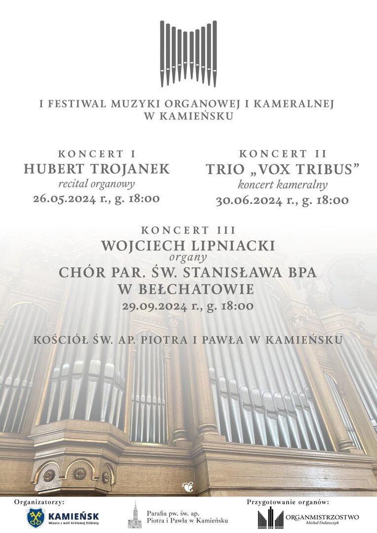 Zapraszamy na trzeci, a zarazem ostatni koncert organizowany w ramach I Festiwalu Muzyki Organowej i Kameralnej w Kamieńsku. Początek o godz. 18.00. Tym razem wystąpi chór Parafii św. Stanisława BPa w Bełchatowie, a na organach zagra p. Wojciech Lipniacki.